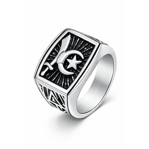 Chevalière GAZI - Épée & Croissant Acier Massif